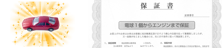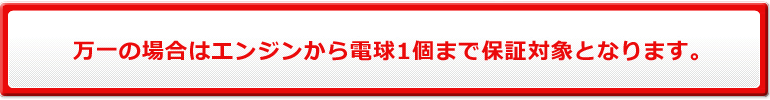 私どもで販売する車両に関しては万全の納車整備をして納車しておりますが、万一の場合はエンジンから電球1個まで保証対象となります。